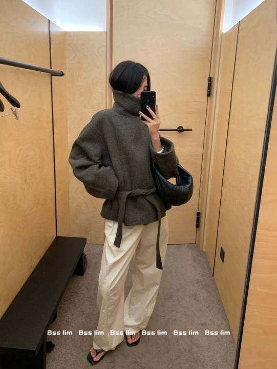 Bss lim 金敏喜短款大衣羊驼毛立领腰带高智感毛呢外套女新款