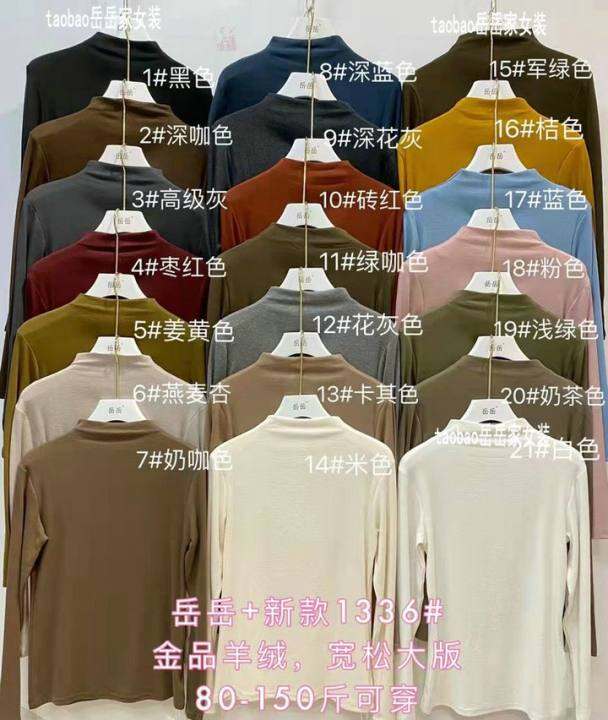 岳岳家1336新款半高领羊绒面料百搭韩版长袖t恤宽松打底衫女上衣