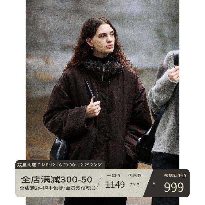 REWEAR/定织高密长丝 巴恩风皮草内胆卷毛领飞行员加绒夹克11127