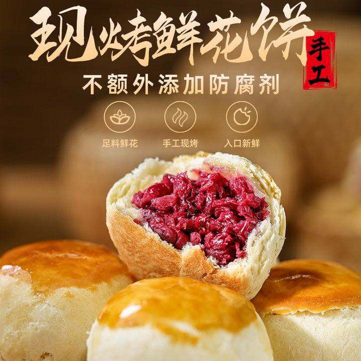 吉庆花语现烤原味鲜花饼手工玫瑰云南特产早餐面 面包零食糕点