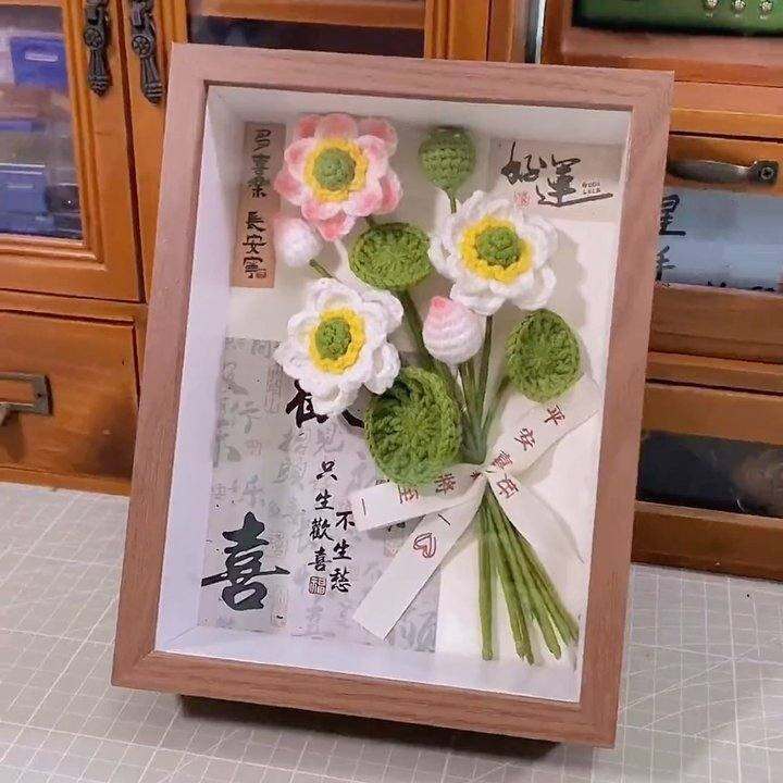 教师节好运荷花钩针花束相框荷花材料包羊毛编织DIY手工老师礼物