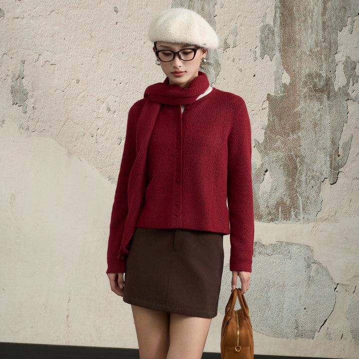 西町村屋简约短款开衫女装2025冬季新款外搭(含围巾)XHAD10100