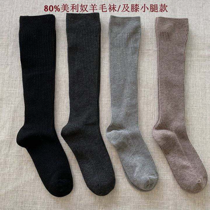 80%美利奴细羊毛袜女士双针保暖吸湿排汗及膝袜子jk学院风日韩风