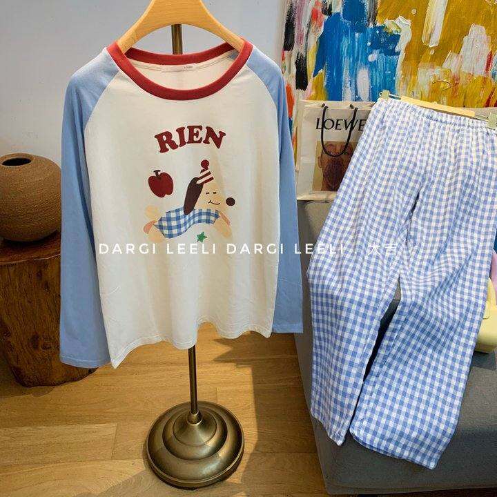 果 剪标k 卡通派对狗100棉长袖长裤春秋睡衣套装情侣居家服可外穿