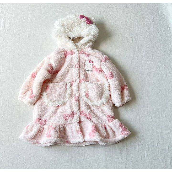 果~粉白女童宝宝冬季凯蒂猫联名新款亲子装保暖家居服睡袍