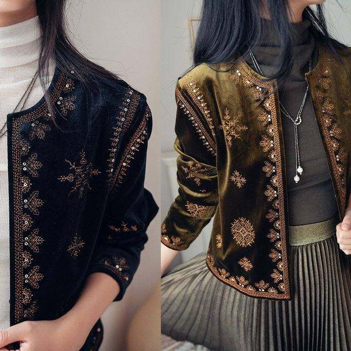 QD特!女王加冕式法国AB秋冬奢华刺绣丝绒短夹克外套2色Y