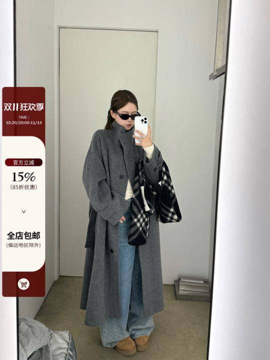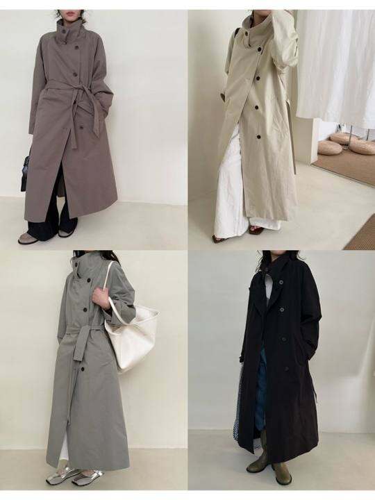 韩国一代@高个人/长重工业双穿博主风衣立领宽松风格外套