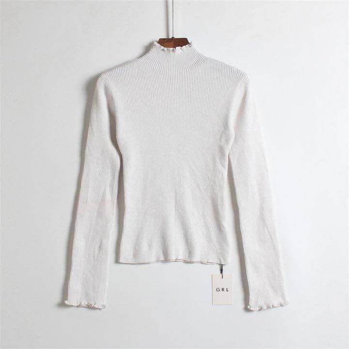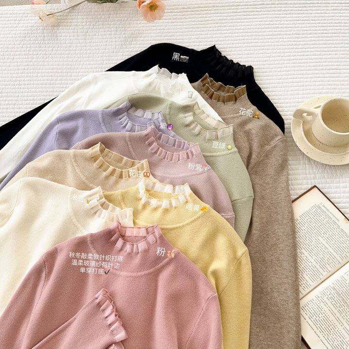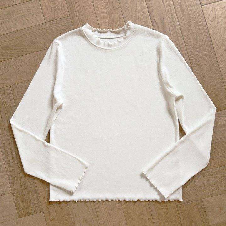 纯色基础款 柔软亲肤 坑条 正肩 花边领 内搭打底衫 长袖 W
