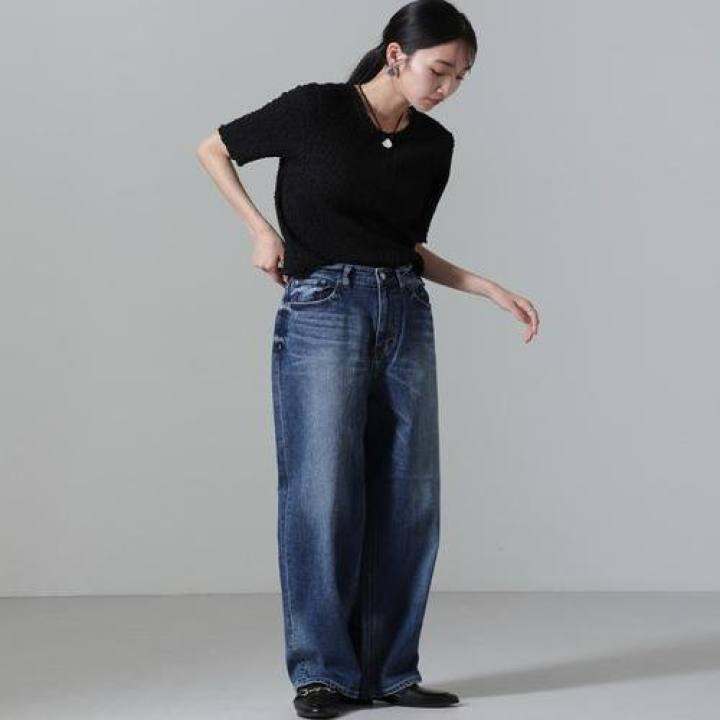 彬彬家~日本单贵牌中高腰牛仔裤略宽松纯棉直筒裤休闲阔腿裤
