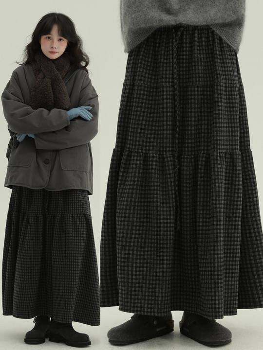 稀有RARE“冬日小温泉"加厚格子蛋糕裙覆古文艺休闲减龄半身裙女