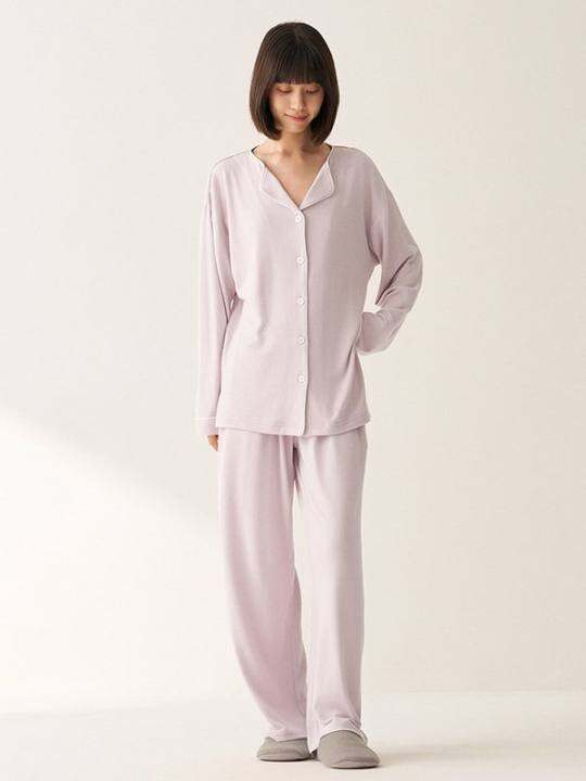 无印良品 MUJI 女式柔软针织前开睡衣套装家居服女款女士女装秋季