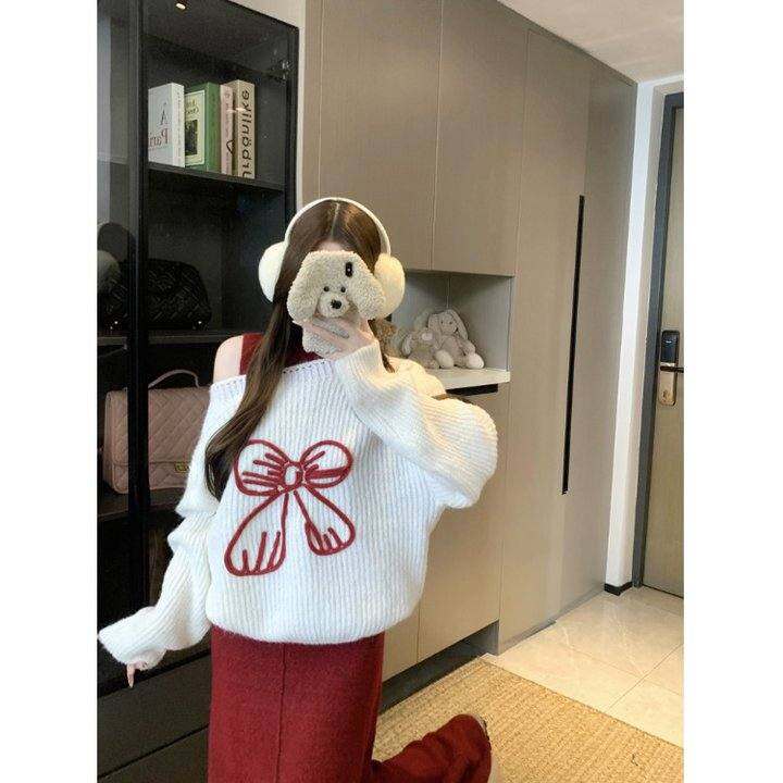 IMFANN 圣诞氛围黑色费尔岛针澳毛开衫