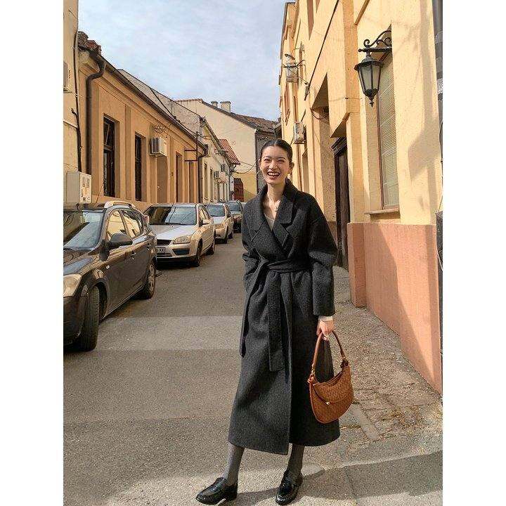 皮扣美暴瞭!诺小拉真品 2025年冬新款 韩国设计师品牌RA羊毛大衣