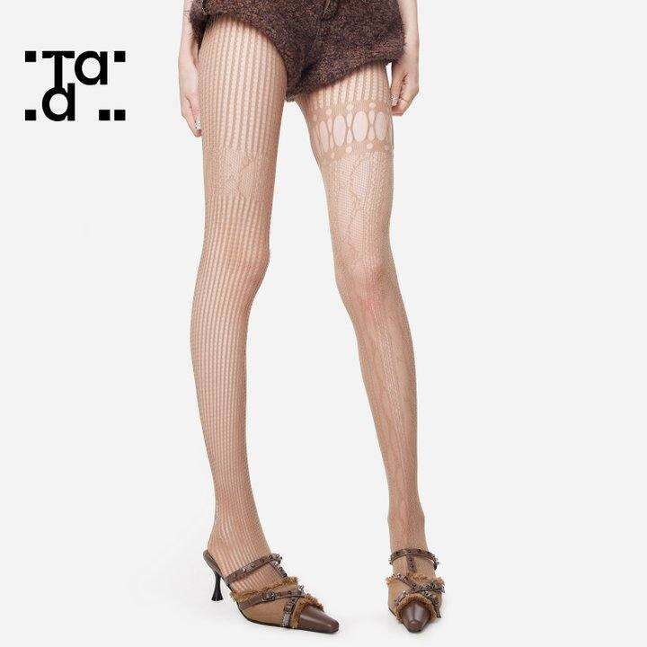 2024春季小众蕾丝拼接镂空网袜女y2k性感百搭不对称亚文化裤袜