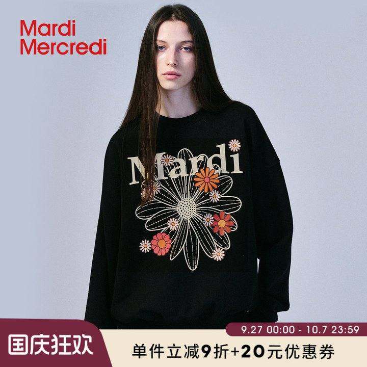 MardiMercredi小雏菊多花字母圆领卫衣纯棉宽松休闲韩系上衣女