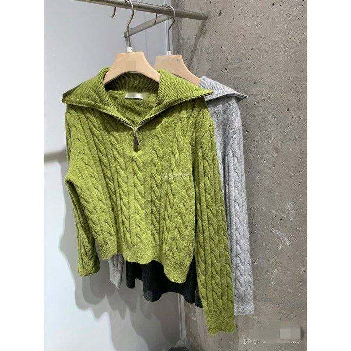 元 同860!冬季女士100%绵羊毛温暖舒适半拉链开领绞花针织衫毛衣