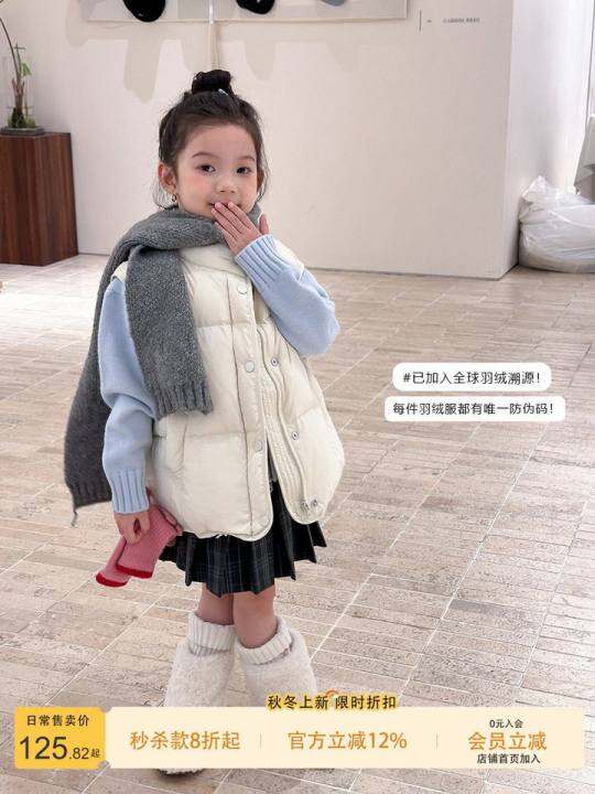 90白鸭绒儿童立领羽绒服马甲女童宽松保暖坎肩中大童背心宝宝外套