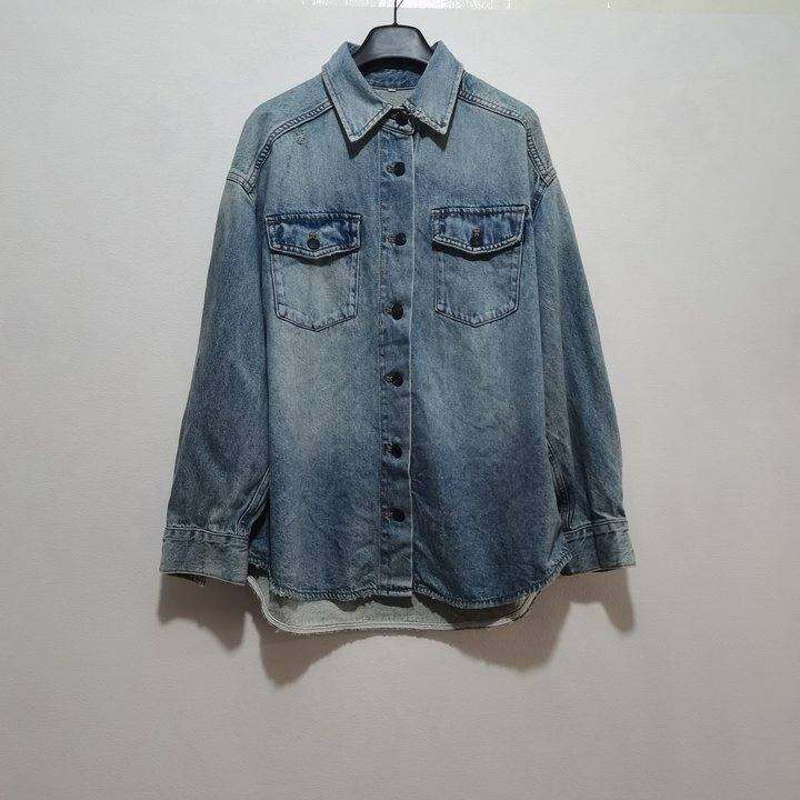 摩CO剪标秋季新款微瑕翻领宽松显瘦休闲百搭长袖牛仔衬衫外套E156