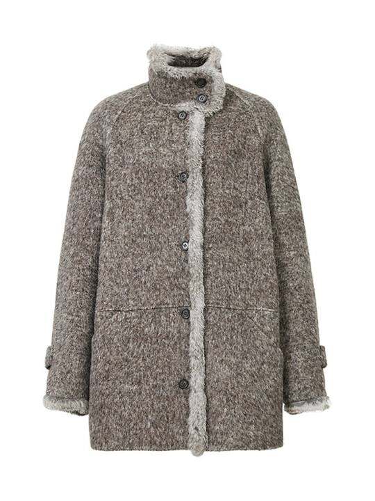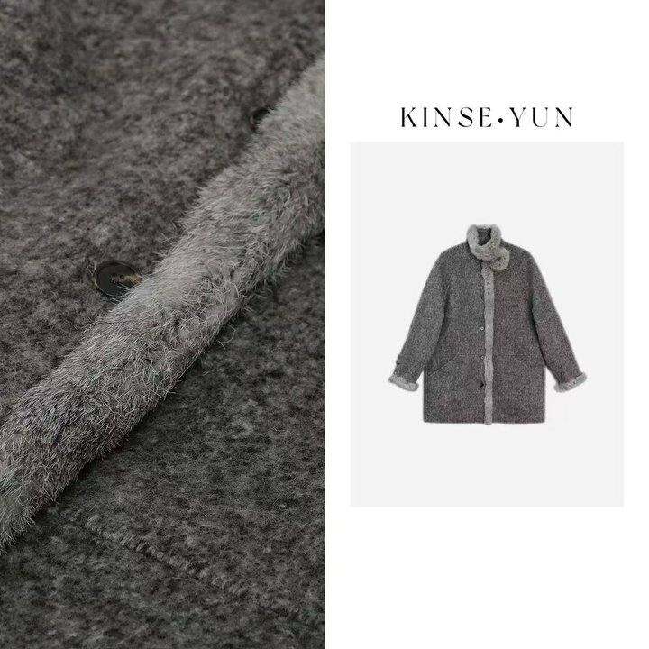 KINSE YUN『考拉外套』兔毛领边抗风保暖羊毛混纺双面大衣QD18818