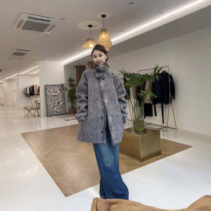 Nice people2025AW绵羊毛混纺水波纹混色肌理感立领插肩袖短大衣