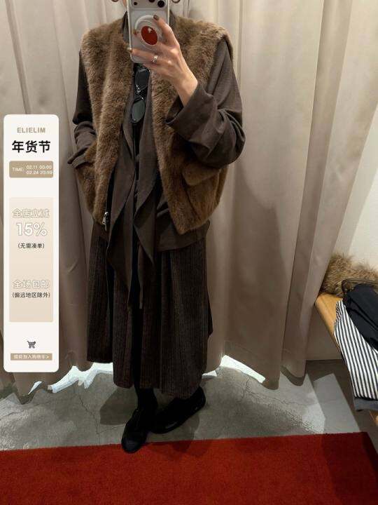 elielim 中古老钱 小精致双口袋环保皮草马甲女新款秋冬叠穿马夹