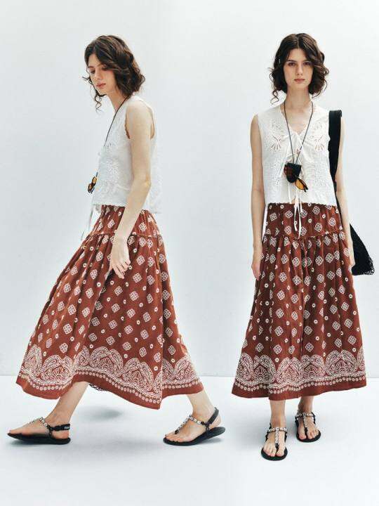 JNBY/江南布衣夏季女装半身裙环保宽松休闲印花A字中长款腰裙气质