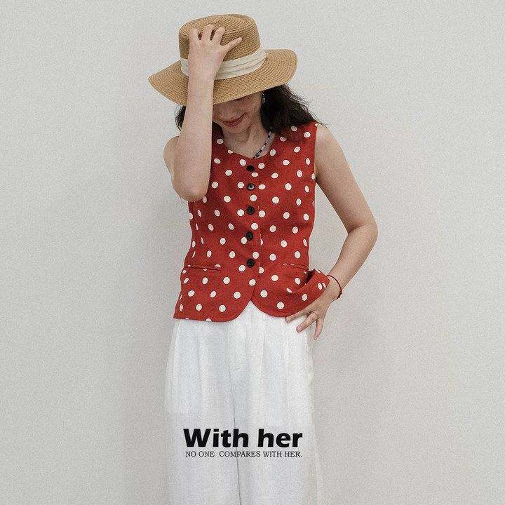 与她原创小众设计覆古法式波点亚麻休闲 𫔮简约西装背心无袖上衣背心