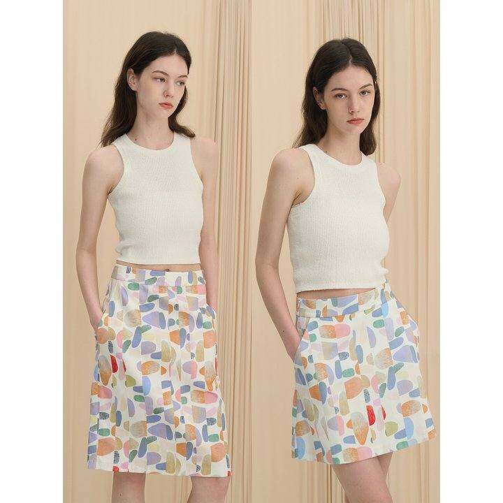 MAISON CECILE法国设计师做图du家趣味印花半身裙