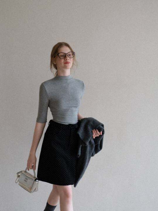羊城故事 纯色高领中袖t恤女秋季新款辣妹气质修身内搭打底衫上衣