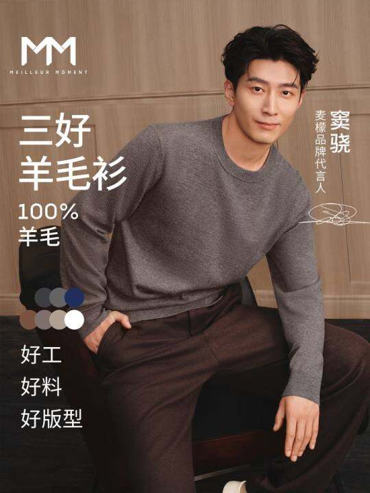 【窦骁同款】MM麦檬100%羊毛男装圆领针织衫毛衣老钱风长袖秋装