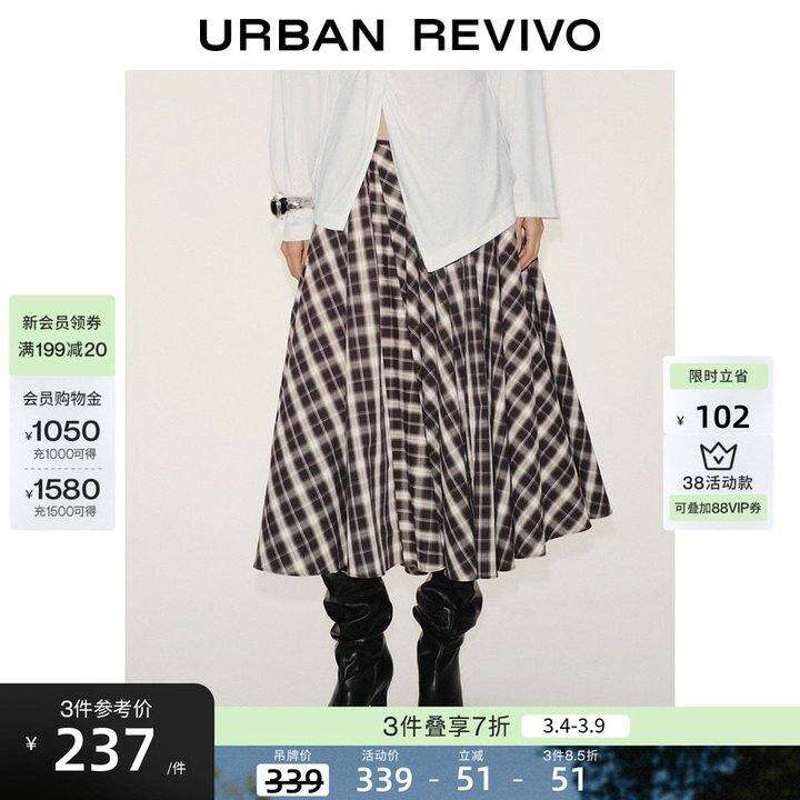 UR2026春季新款女装琥珀流光风休闲格纹棉质半裙UWH560010