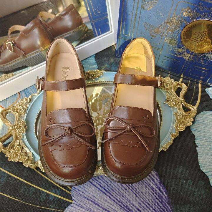 小豆蔻 可爱lolita软萌娃娃鞋制服鞋 系蝴蝶结真皮学院风软妹鞋