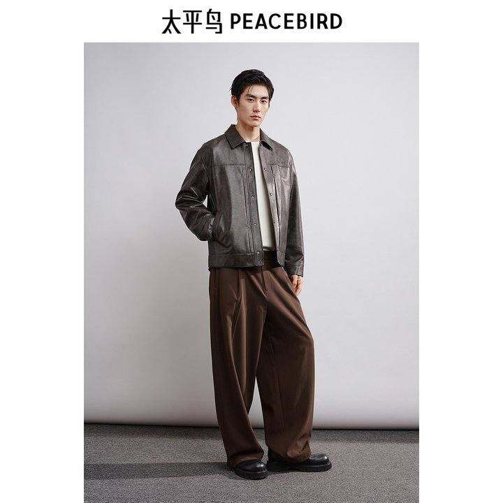 太平鸟男装 擦色PU皮夹克2025春季新款时尚翻领休闲 𫔮外套刺绣茄克