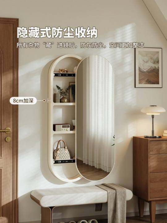 墙面置物架带全身镜子一体挂墙防尘收纳架入户门隐藏式推拉穿衣镜