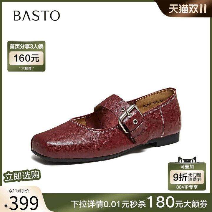 百思图2026春季商场新款羊皮玛丽珍鞋小皮鞋女浅口单鞋UZT01AQ6