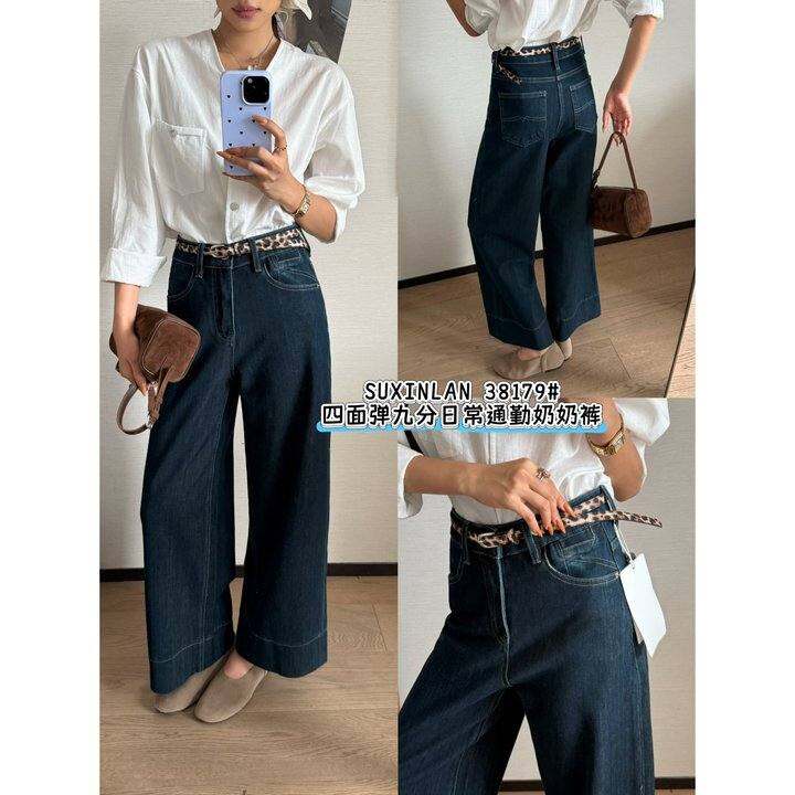 蛋挞安利/很久没有买到让我这么喜欢的裤子了!版型对大梨很友好,裤前扣钮到在肚脐处,背后松紧腰,包容性很强,特别显腿长!!