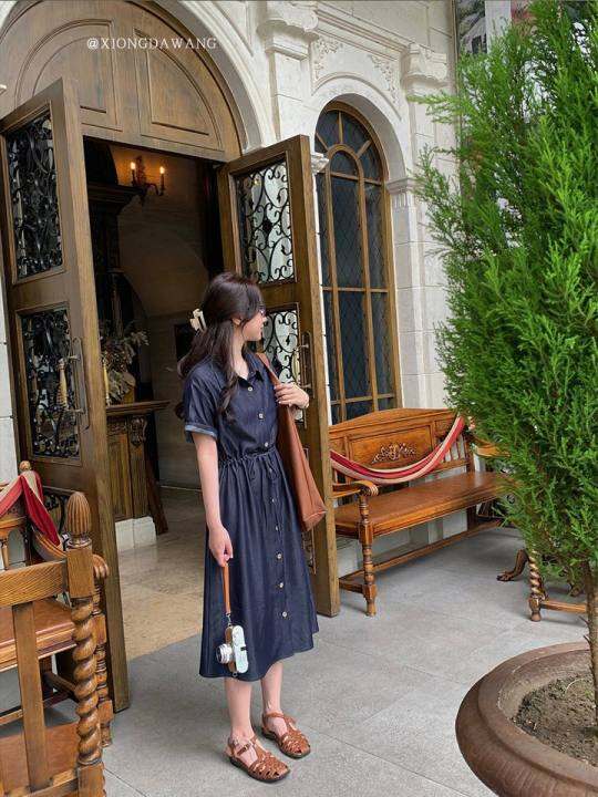 熊大王【画廊周末】小个子夏季新款复古收腰显瘦仿牛仔连衣裙女