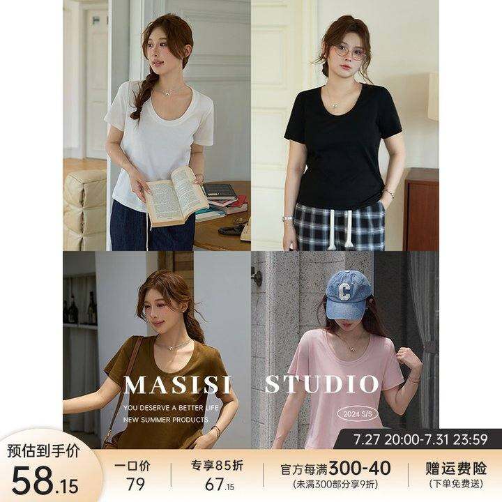 【马西西 新品已开限时85折】“人手一打”基础U领百搭T恤
