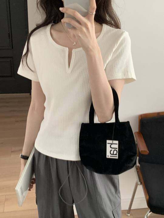 上新价59,小v领棉质T恤 五色百搭 温柔气质