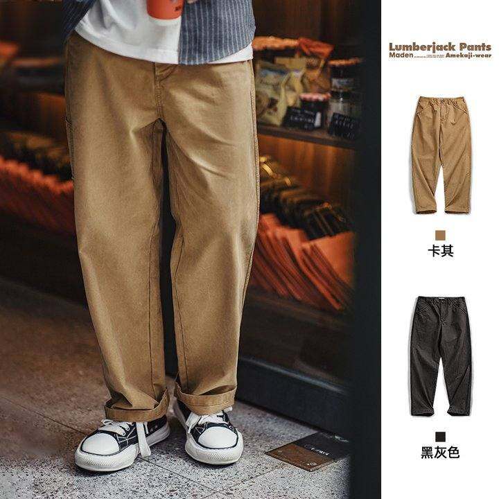 马登工装 美式复古卡其做旧伐木裤vintage宽松阔腿直筒休闲裤男秋
