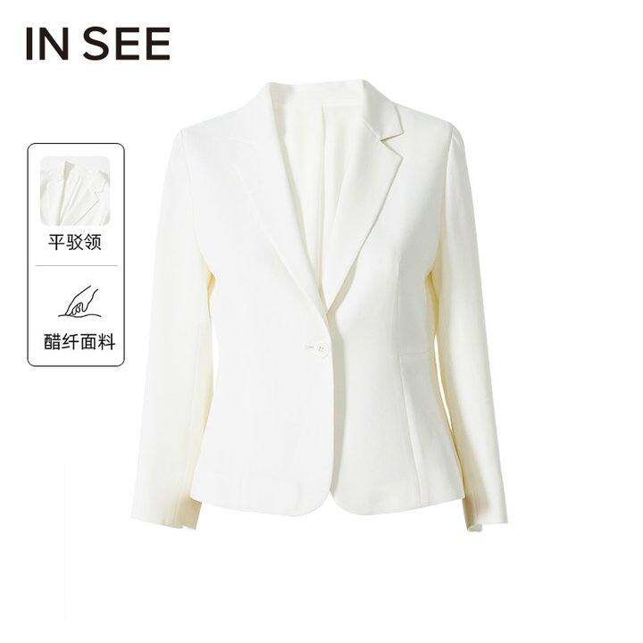 IN SEE 轻职场 白色醋酸西装短外套女25秋薄款高级感显瘦正肩西服