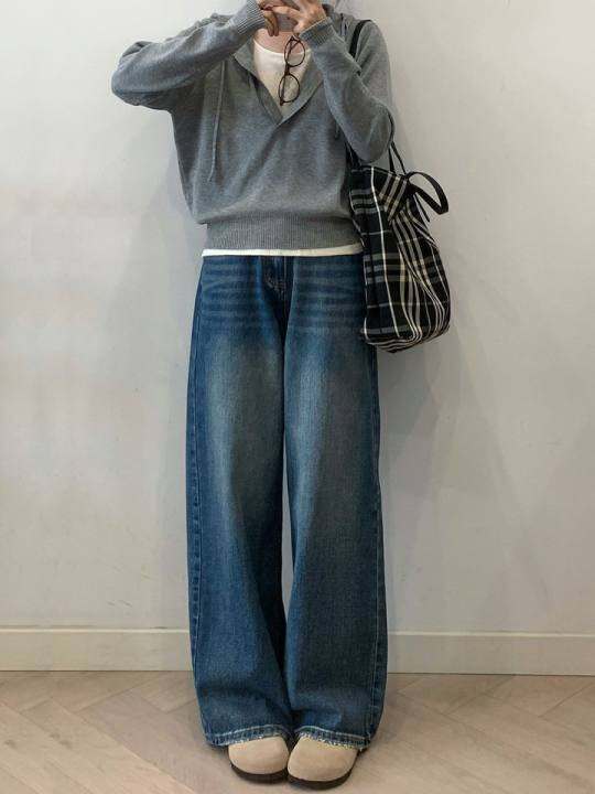 2025轻奢新款牛仔阔腿裤女宽松拖地裤覆古百搭高腰显瘦直筒长裤