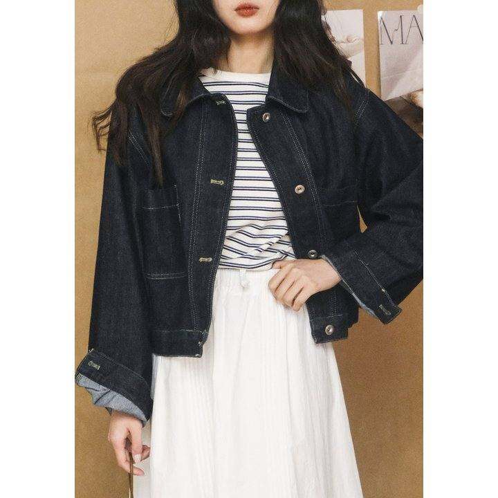 商场同款/百武西“格力高”复古文艺撞色线水洗牛仔短外套女1554
