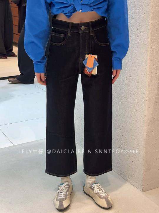 代嘉儿85966暖肤绒牛仔裤女2025冬丹宁蓝发热面料弹力九分法棍裤