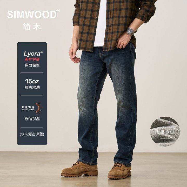 SIMWOOD/简木【LS07宽松直筒】15盎司莱卡炽绒微弹牛仔裤