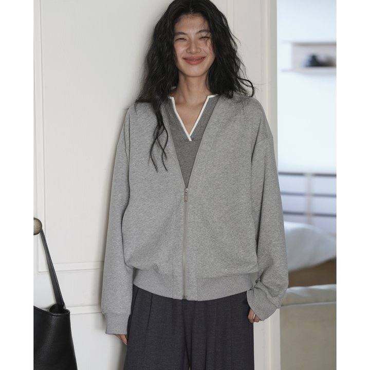 EIGHTHMONTH 慵懒风宽松拉链卫衣外套女2024冬季新款简约灰色上衣
