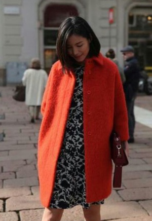 MAXCO2014秋冬 红色小翻领 linda 明星同款橘红色 茧型羊毛女大衣
