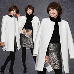 2014秋冬新款白色修身毛呢外套通勤韩国斗篷风衣中长款加厚大衣女