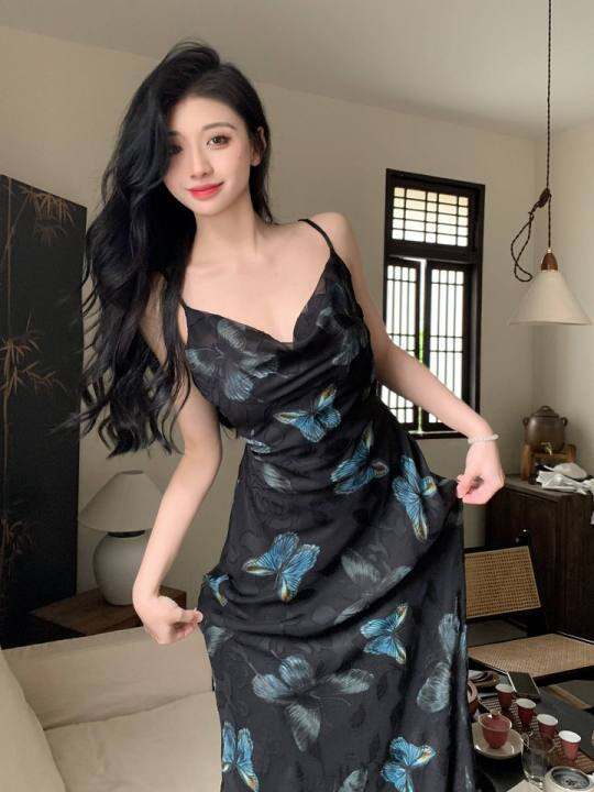 大码女装法式蝴蝶气质吊带连衣裙女胖mm高级感收腰显瘦包臀长裙