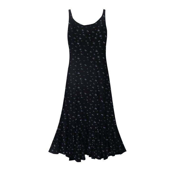 秋季新款法式气质小性感修身显瘦荷叶边小碎花吊带裙连衣裙长裙女